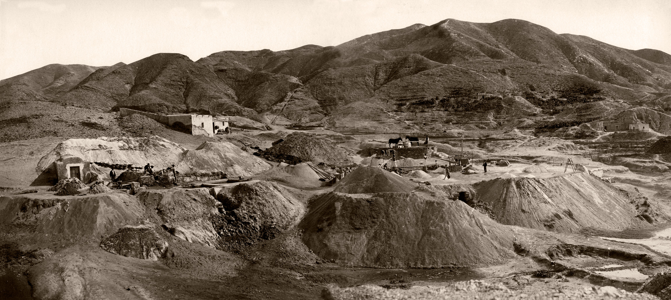 La primera explotación fue Virgen del Carmen, a la que siguieron otras muchas. Esta primera etapa de explotación, comprendida entre el descubrimiento y la década de 1870, estuvo protagonizada por los capitales locales. Más tarde se afianzaron otras compañías foráneas, como la Compañía de Águilas y Société Minière d’Almagrera.