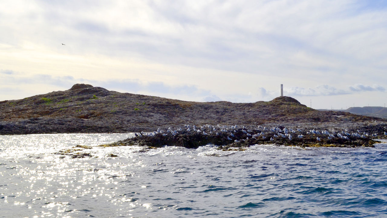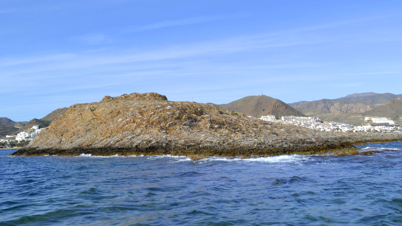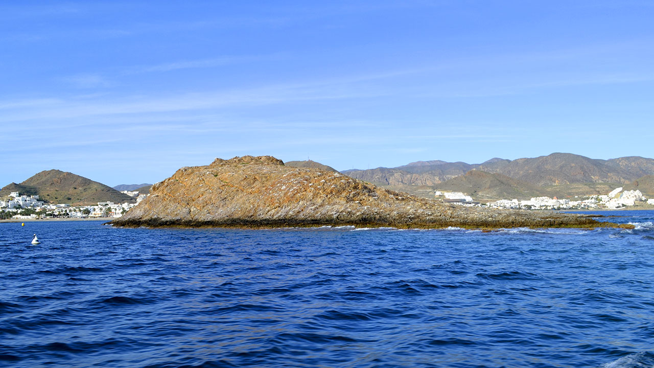 Junto a la costa de Carboneras a su oeste y mar abierto al este.