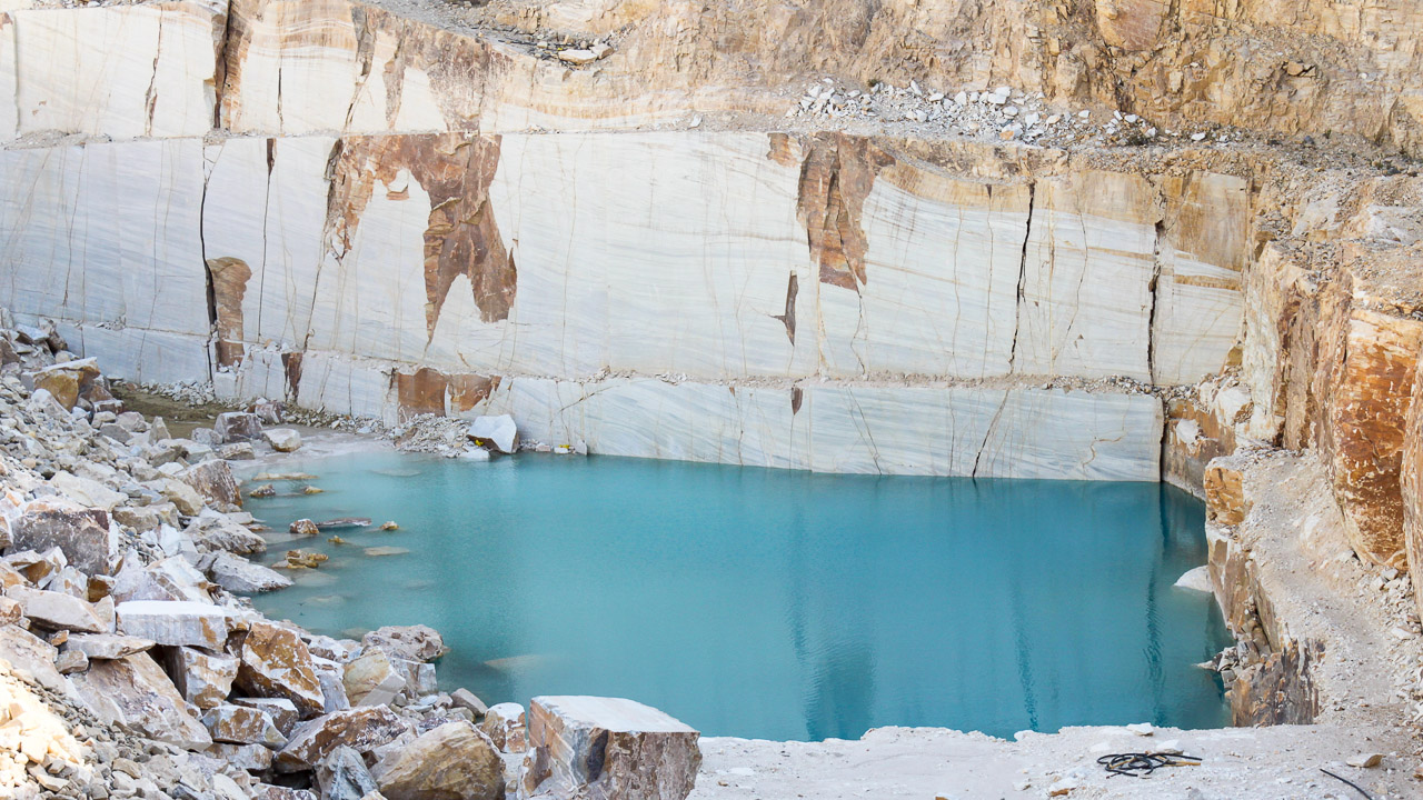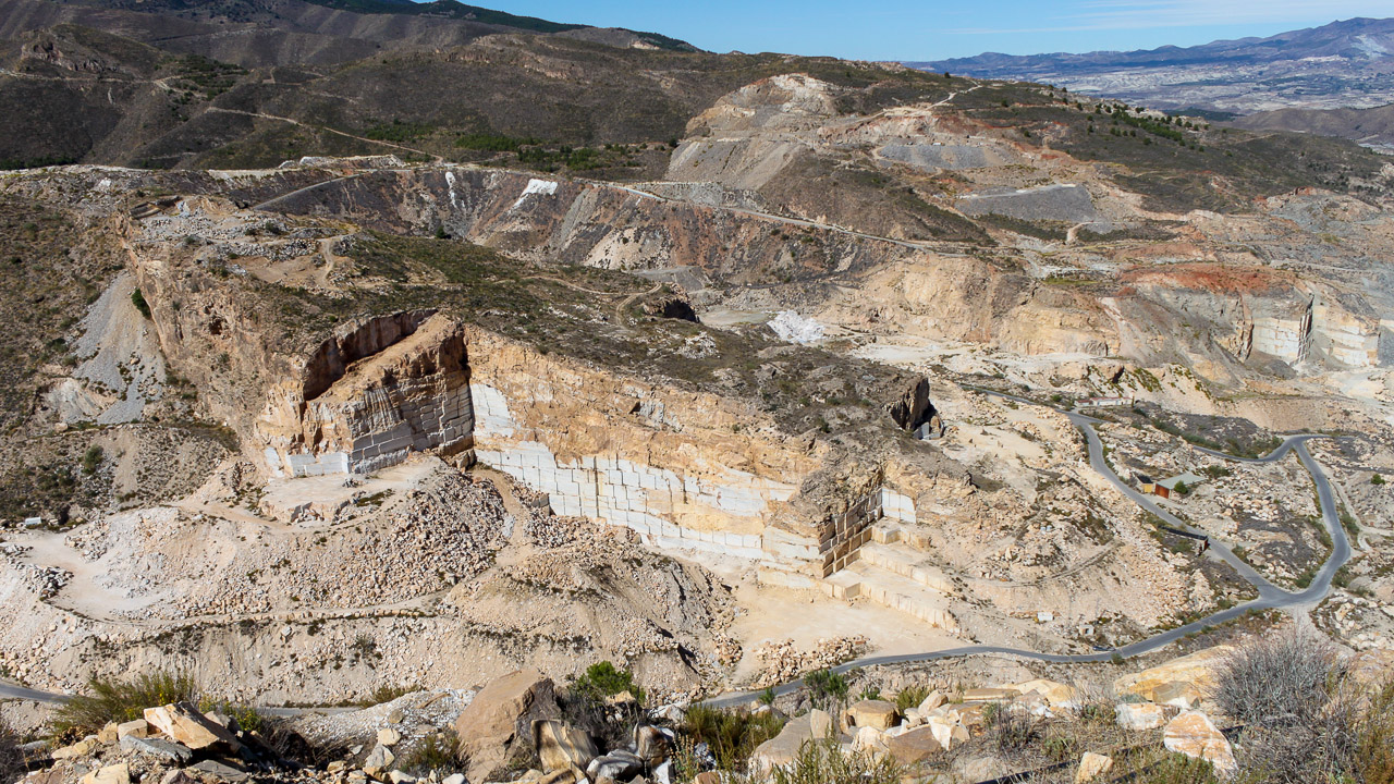 Entorno: El mármol blanco queda a la vista de esta cantera de gran dimensión.